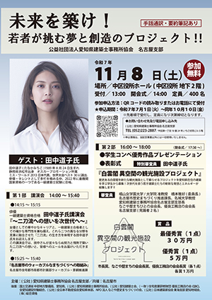 田中道子が、11月8日(土)に開催されるイベント「未来を築け! 若者が挑む夢と創造のプロジェクト!!」に出演します。